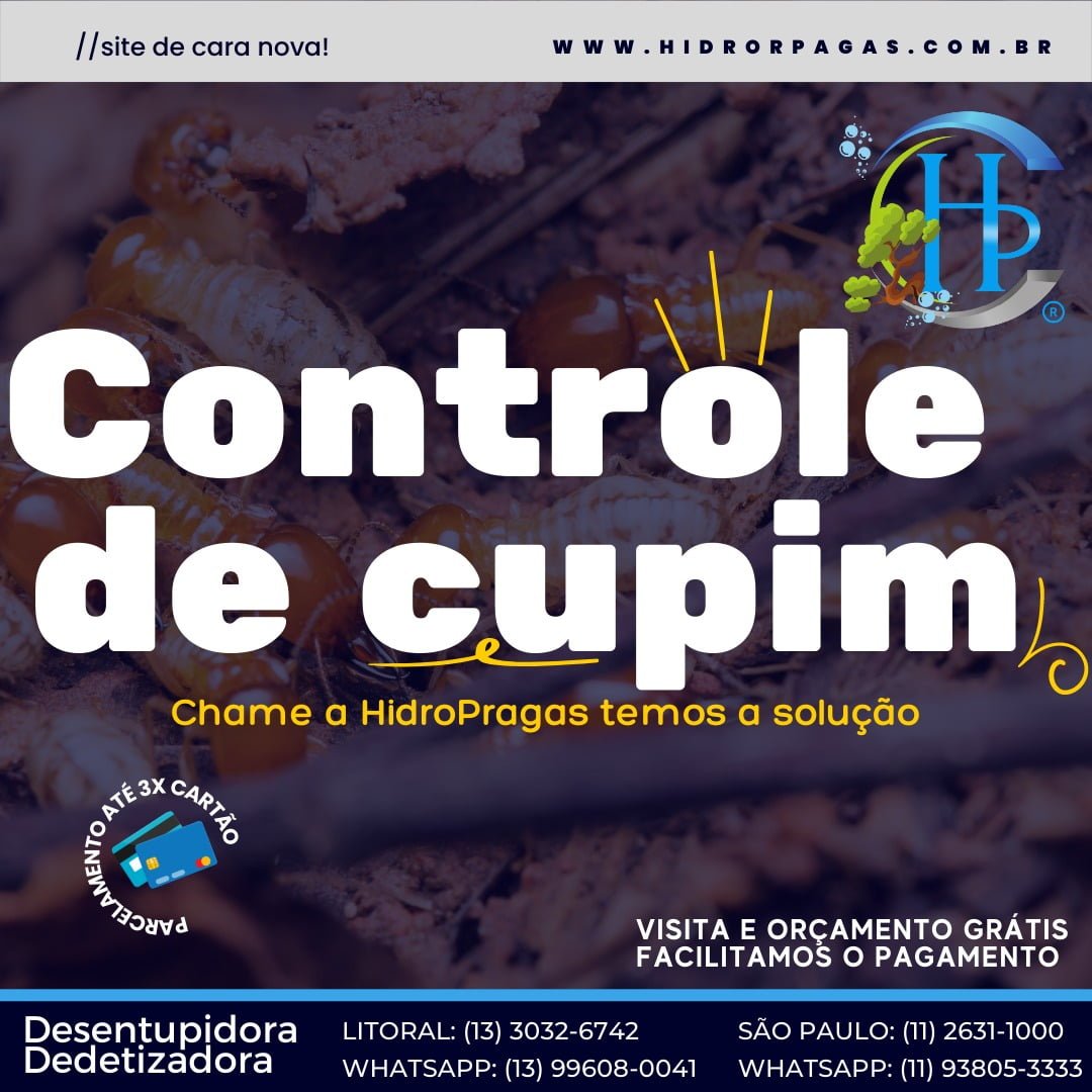 Nós, a Hidro Pragas Dedetizadora e Descupinizadora, Temos como finalidade controlar e prevenir cupins que tem por hábito de se alimentar de celuloses tais como: papéis, livros, arvores, estruturas de madeira, ou qualquer outro material derivado deste composto.